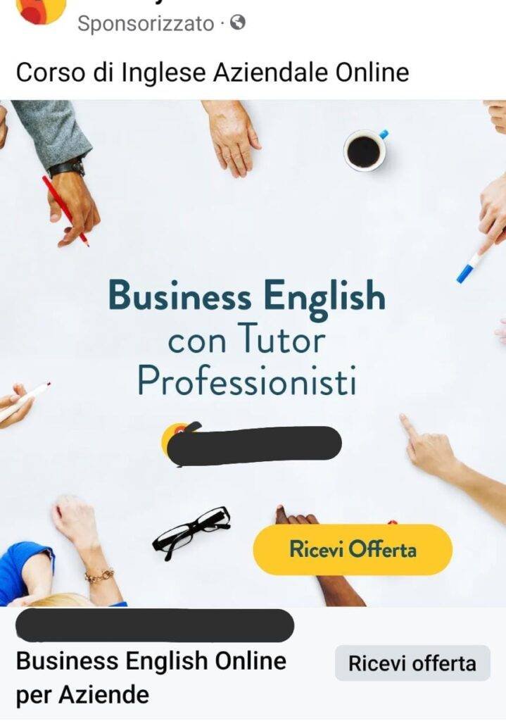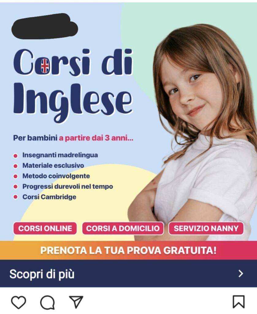 The term “insegnanti madrelingua” is used by default in advertising language courses on social media. As as result, if you compare ads from different language schools in the same town, you will notice that they all offer native-speaker teachers. By doing so, you are not differentiating from your competitors. What’s worse, for a potential student comparing schools’ Facebook ads, nothing attractive in the advert makes the language centre stand out from others on social media paid posts.